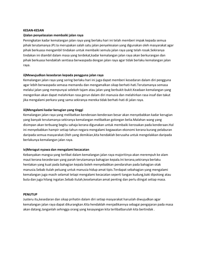 Karangan Punca Kemalangan Jalan Raya Spm