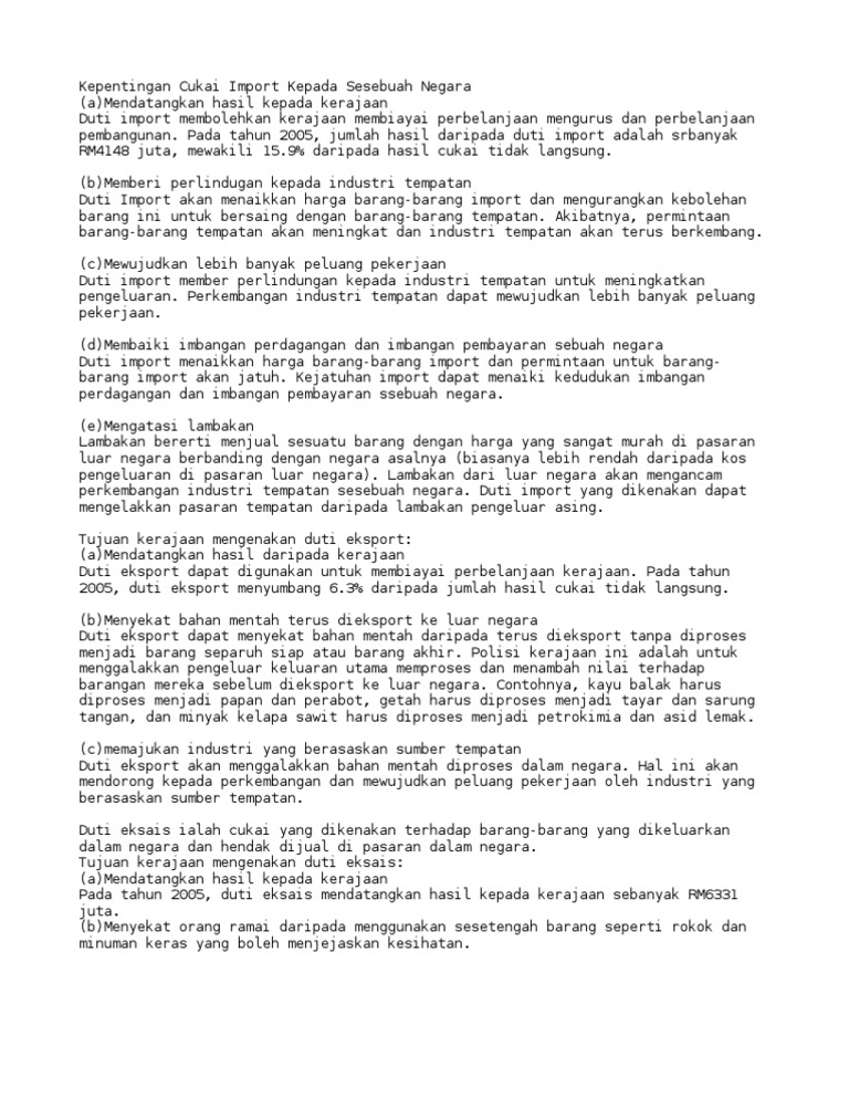 Kepentingan Cukai Import Kepada Negara