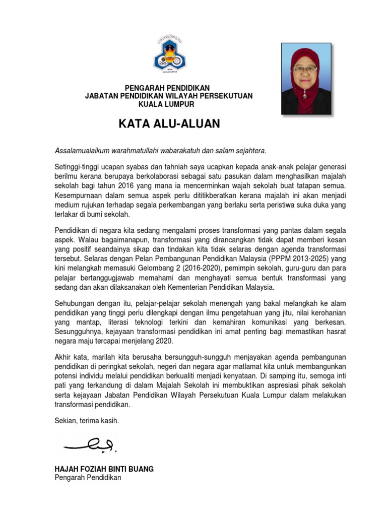 Kata Aluan Pengarah Untuk Majalah Sekolah 2016 Sek Men 1 Pdf