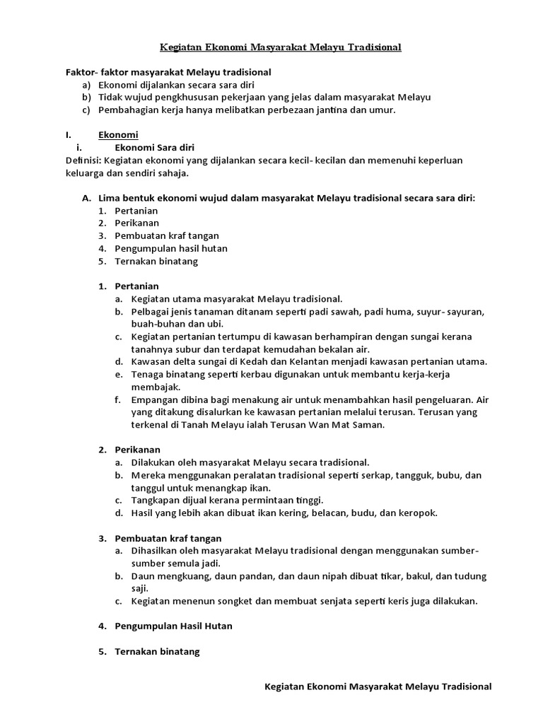 Kegiatan Ekonomi Masyarakat Melayu Tradisional