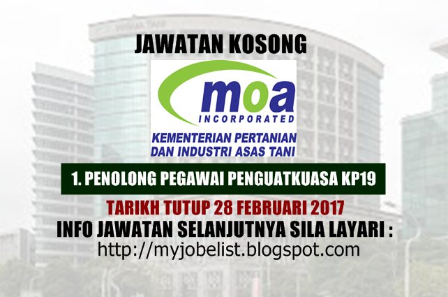 Jawatan Kosong Kementerian Pertanian Dan Industri Asas Tani Moa 28 Februari 2017