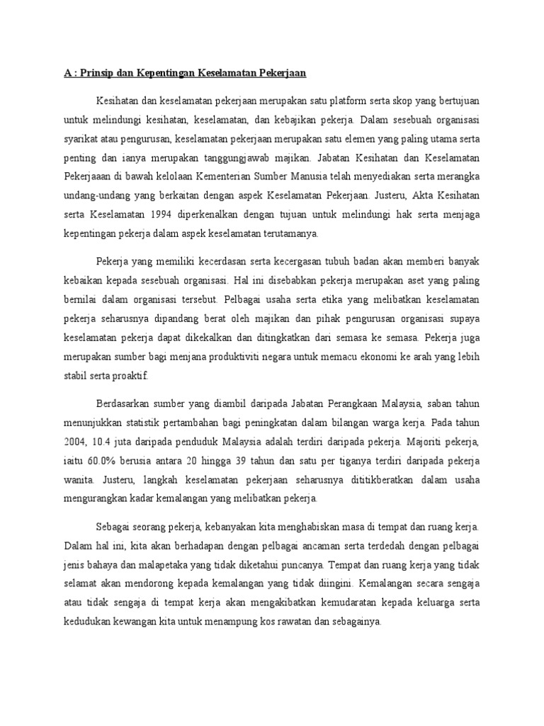 Pdf Kepentingan Kesihatan Dan Keselamatan Pekerja