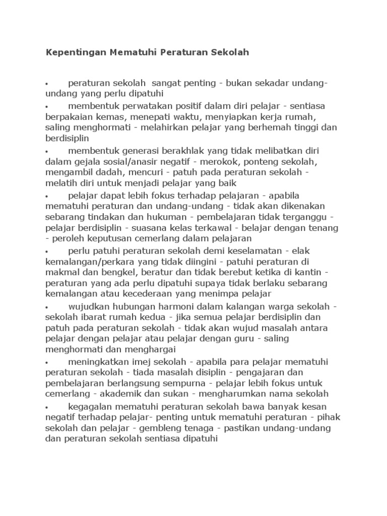 Kepentingan Mematuhi Peraturan Sekolah Docx