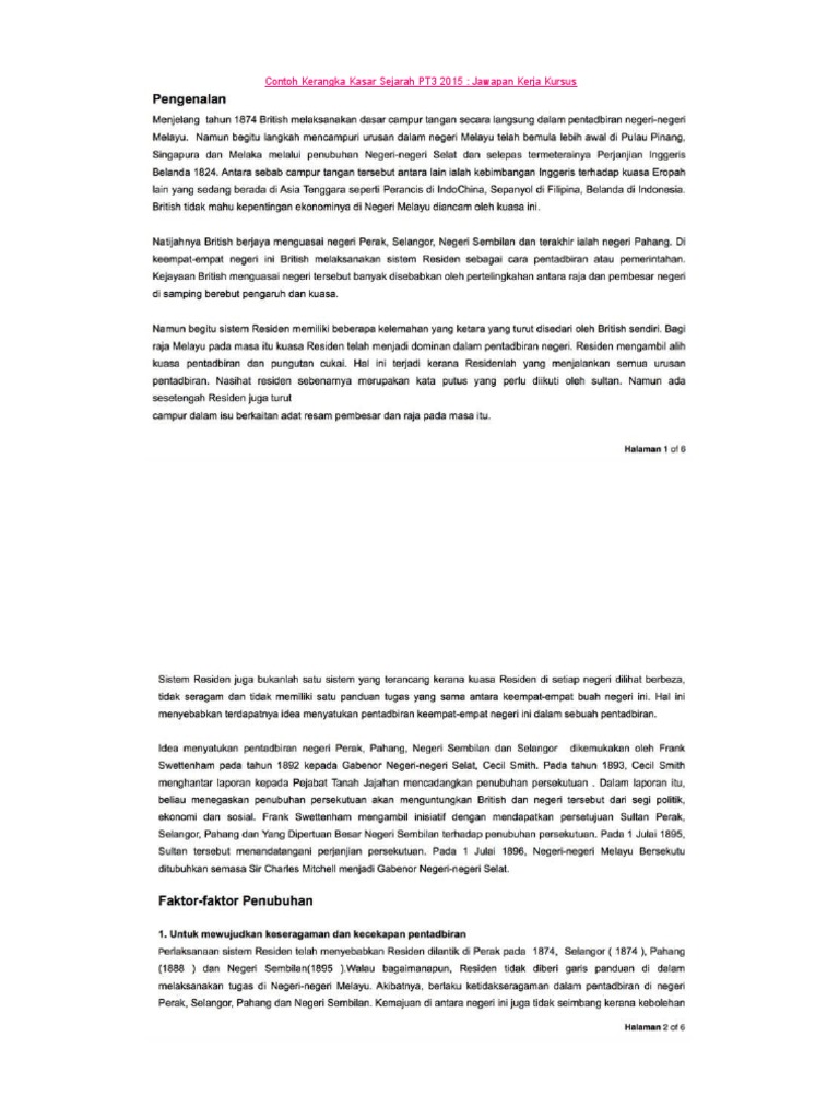 Contoh Jawapan Tugasan Sejarah Pt3 2015 Persetiaan Persekutuan
