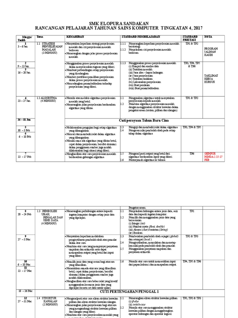 Download Rpt Sains Komputer Tingkatan 5 Power Rancangan Tahunan Tingkatan 4 Skoloh