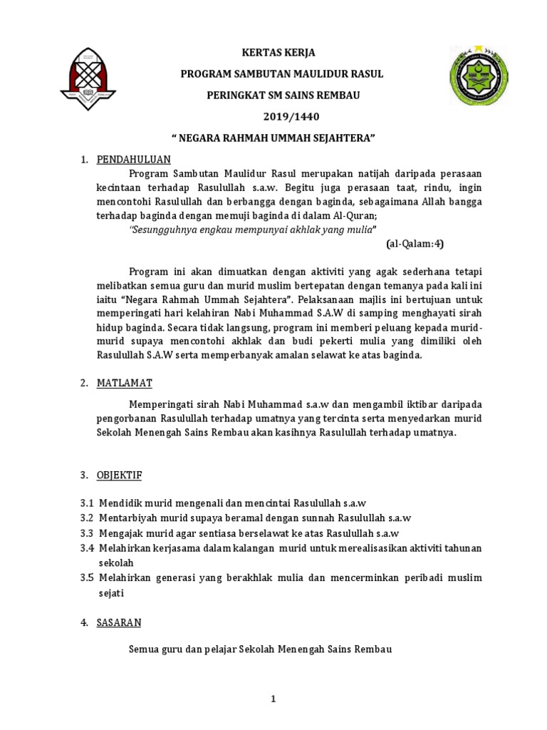 Kertas Kerja Program Sambutan Maulidur Rasul Peringkat Sm Sains Rembau 2019 1440 Negara Rahmah Ummah Sejahtera
