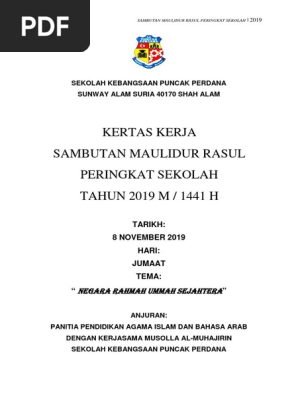 Kertas Kerja Sambutan Maulidur Rasul Peringkat Sekolah Tahun 2019 M 1441 H