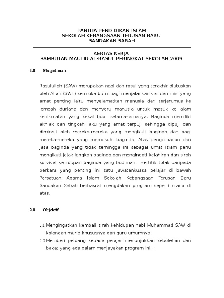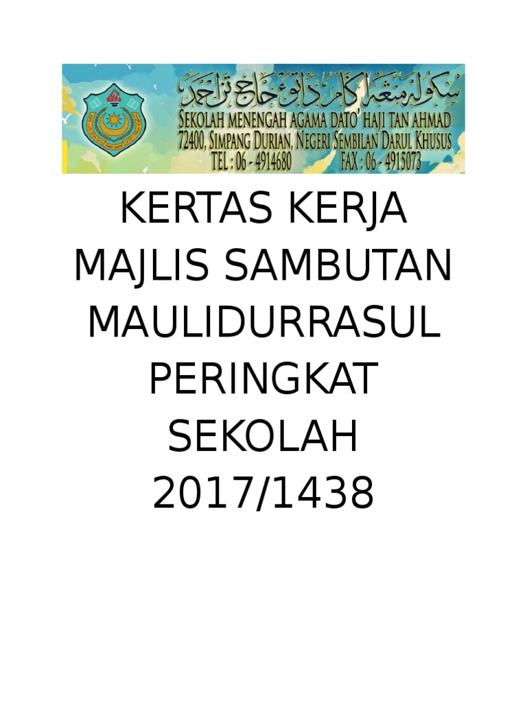 Kertas Kerja Majlis Sambutan Maulidurrasul Peringkat Sekolah 2017 Docx
