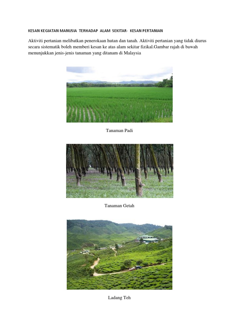 Aktiviti Pertanian Dan Impak Terhadap Alam Sekitar