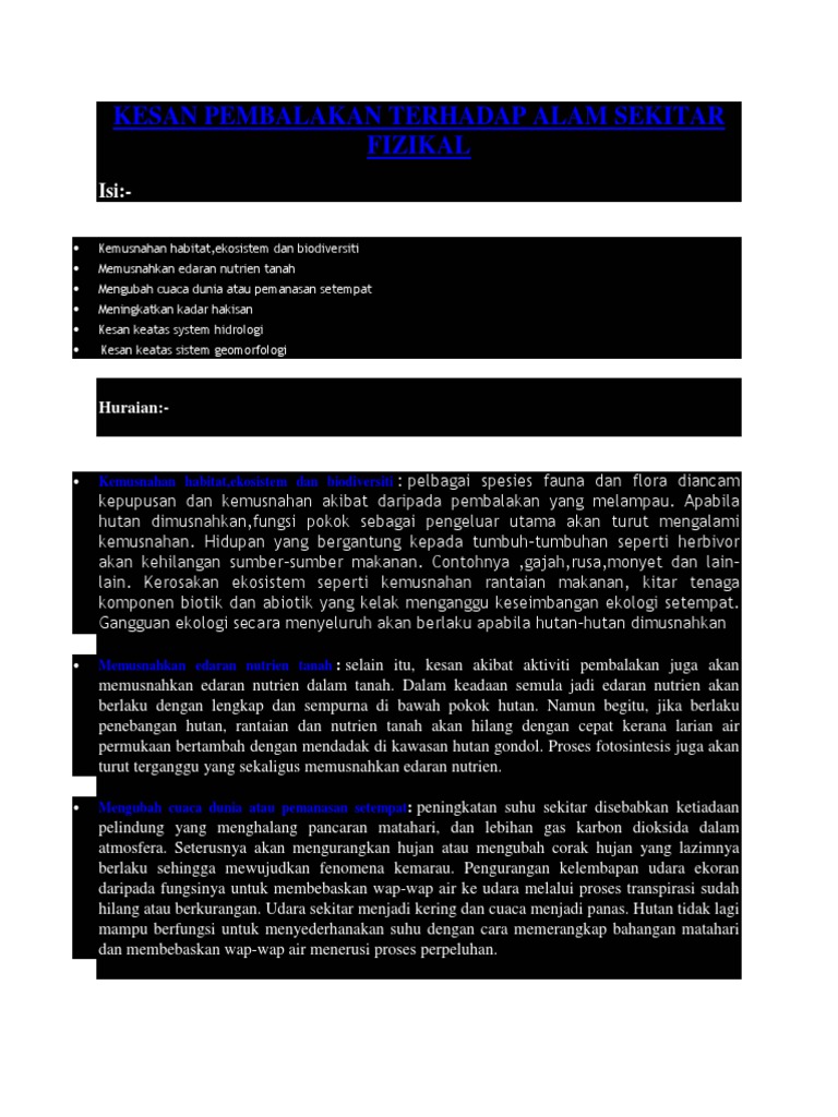 Titas Presentation Pptx Kesan Pembalakan Terhadap Alam Sekitar Fizikal 1 Disebabkan Ketiadaan Pelindung Yang Menghalang Bahangan Matahari Dan Course Hero