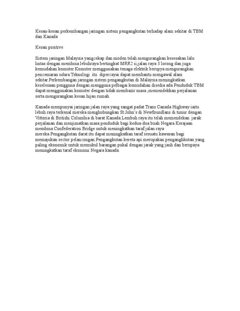 Kesan Kesesakan Lalu Lintas Karangan Spm