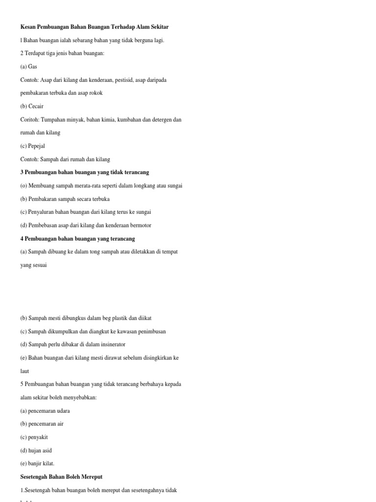 Kesan Pembuangan Bahan Buangan Terhadap Alam Sekitar