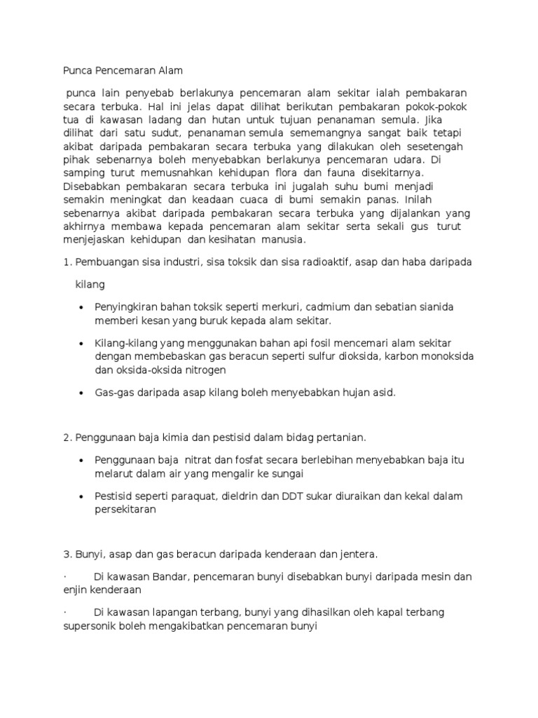 Alam Sekitar Punca Berlakunya Pencemaran Alam Sekitar Cute766