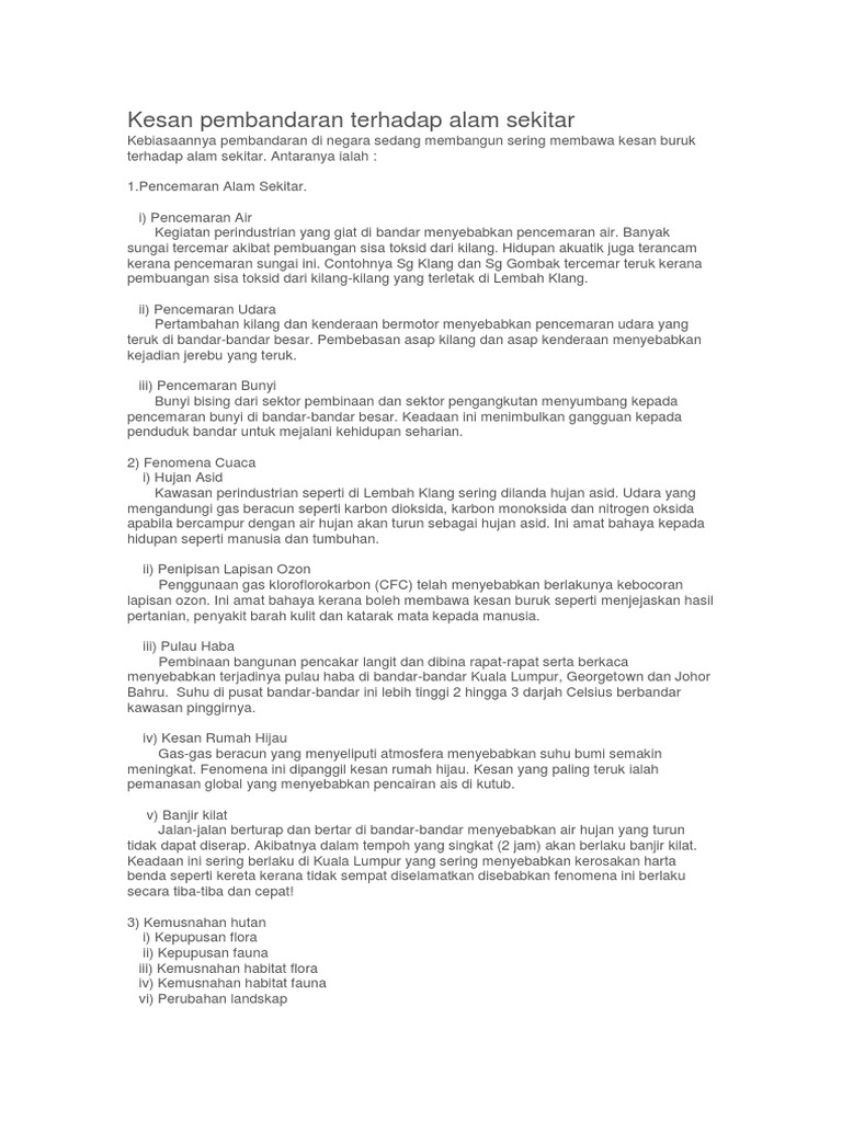 Kesan Pembandaran Terhadap Alam Sekitar