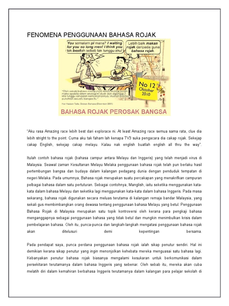Penggunaan Bahasa Rojak Dalam Kalangan Masyarakat Malaysia Dan Peranan Pelajar Dalam Memartabatkan K Penggunaan Bahasa Rojak Dalam Kalangan Masyarakat Malaysia Dan Peranan Pelajar Dalam Memartabatkan Kembali Bahasa Malaysia Yang Betul
