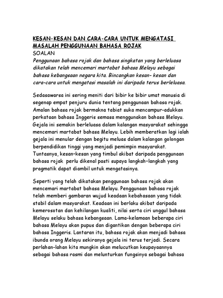 Bmmb3013 Kk Bahas Docx Impak Negatif Bahasa Rojak Gejala Bahasa Rojak Sememangnya Meninggalkan Impak Negatif Yang Semakin Ketara Antara Impak Course Hero