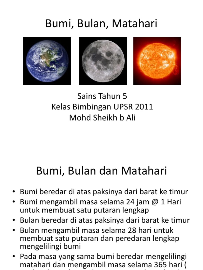 Bumi Bulan Dan Matahari Tahun 5 Pdpc Idea By Teacher Faiza Facebook