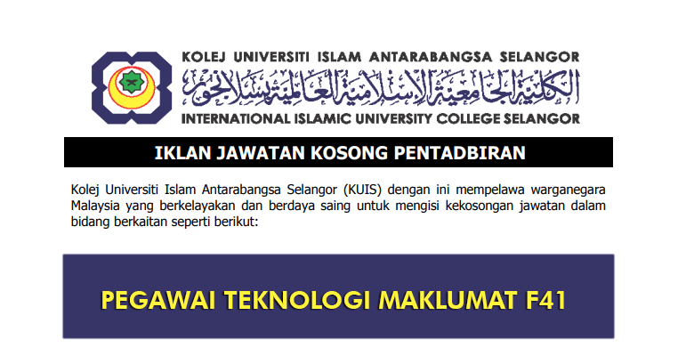 Jawatan Kosong Di Kolej Universiti Islam Antarabangsa Selangor Kuis Jobcari Com Jawatan Kosong Terkini