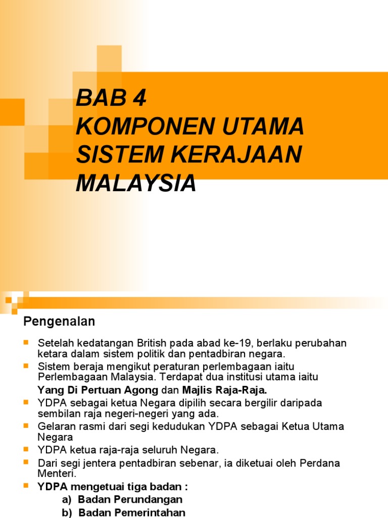 Bab 4 Komponen Utama Sistem Kerajaan Malaysia