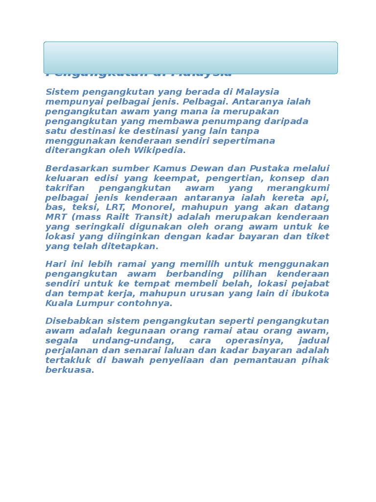 Contoh Konsep Dan Takrifan Sistem Pengangkutan Di Malaysia