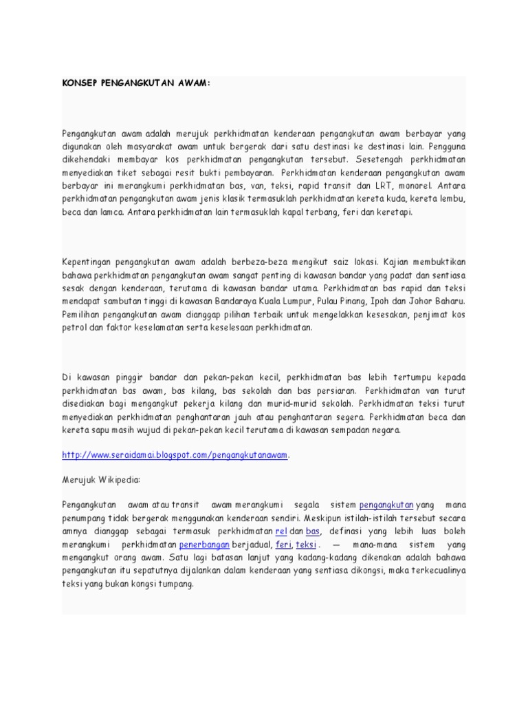 Konsep Dan Takrifan Sistem Pengangkutan Awam Wikipedia