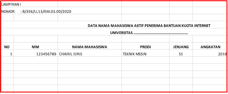 Format Lampiran I Dan Ii File Excel Bantuan Kuota Internet Mahasiswa Dan Dosen Posting Kampus