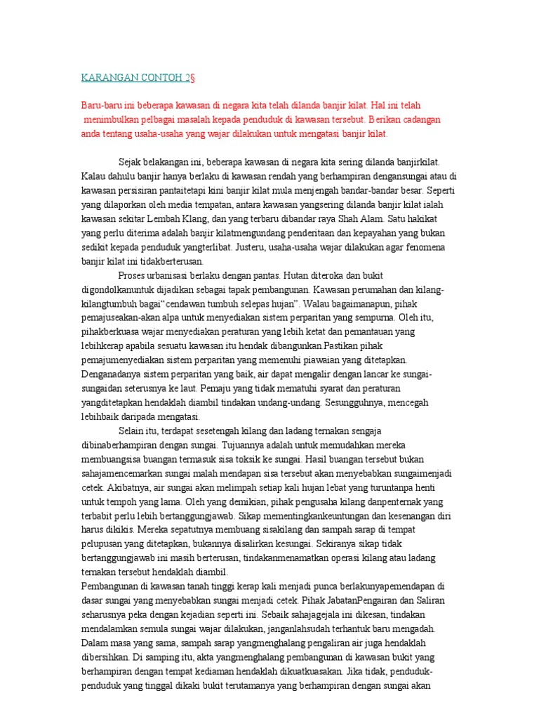 Langkah Mengatasi Banjir Kilat Karangan Spm