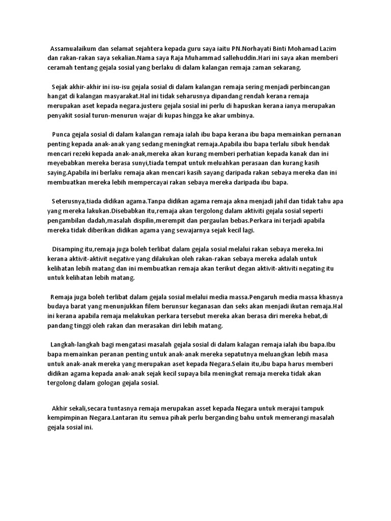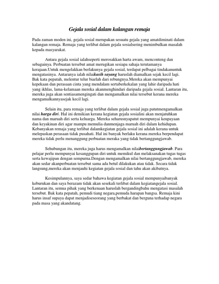Gejala Sosial Dalam Kalangan Remaja Karangan Spm