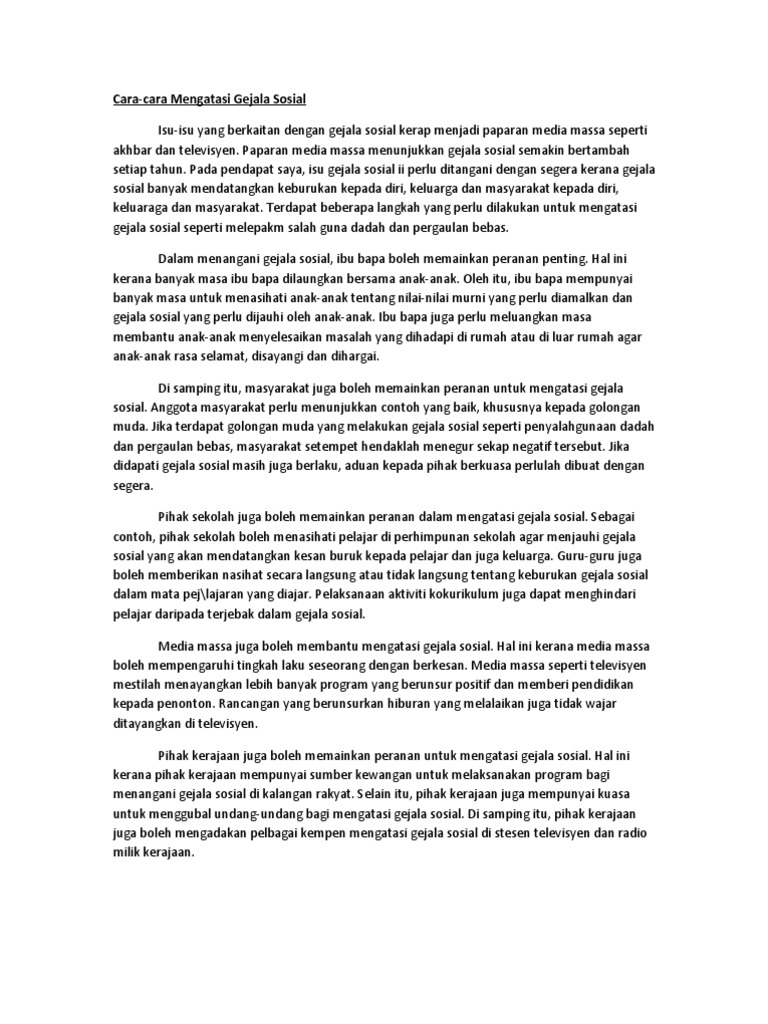 Karangan Panas Spm Langkah Mengatasi Gejala Sosial Dalam Kalangan Remaja
