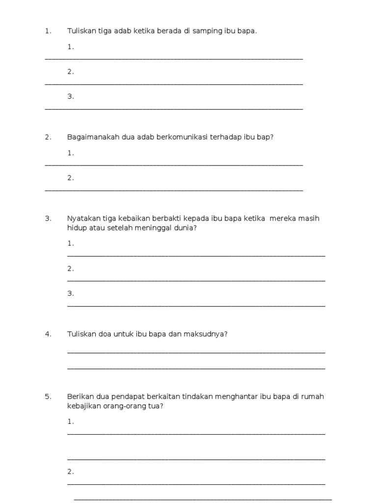 Lembaran Kerja Adab Terhadap Ibu Bapa