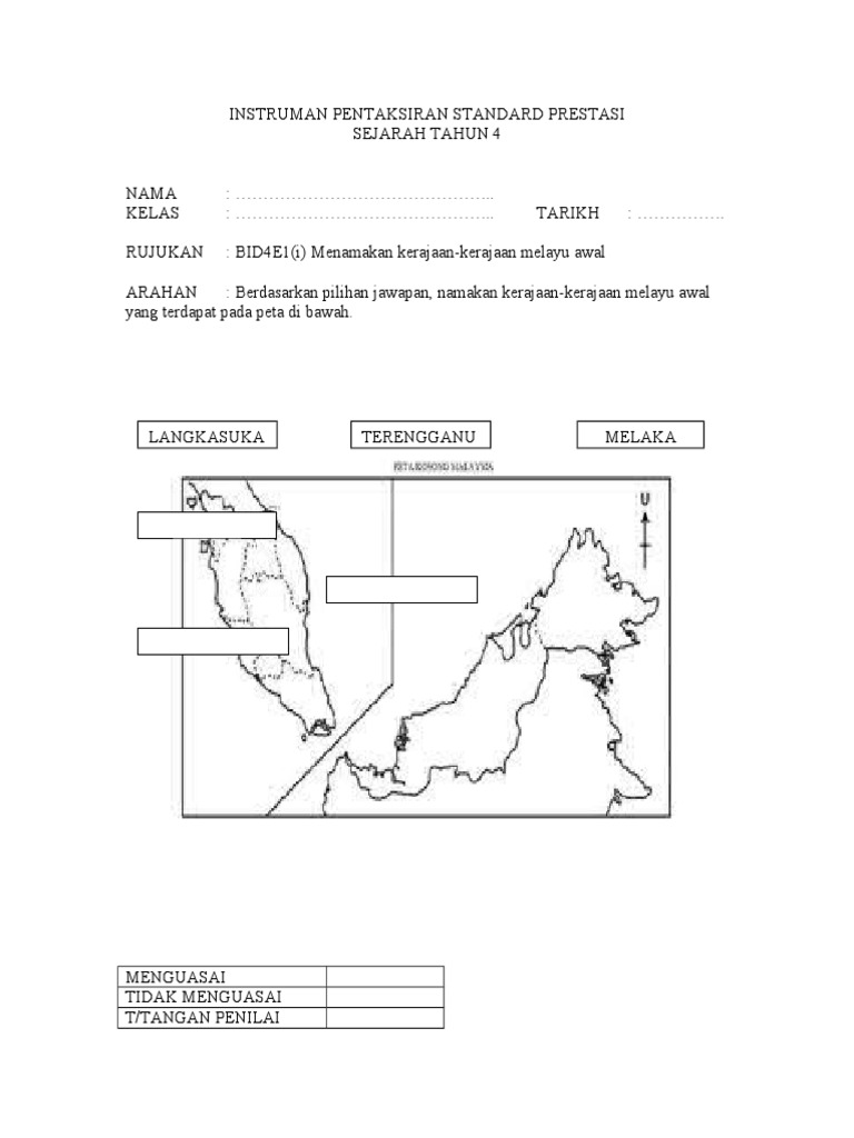Lembaran Kerja Sejarah Tahun 4 Kerajaan Melayu Awal