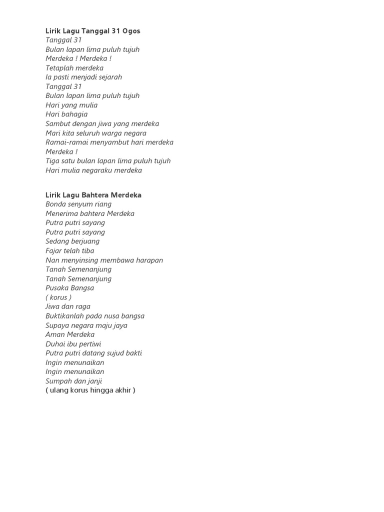 Lirik Lagu 31 Ogos 15pcs