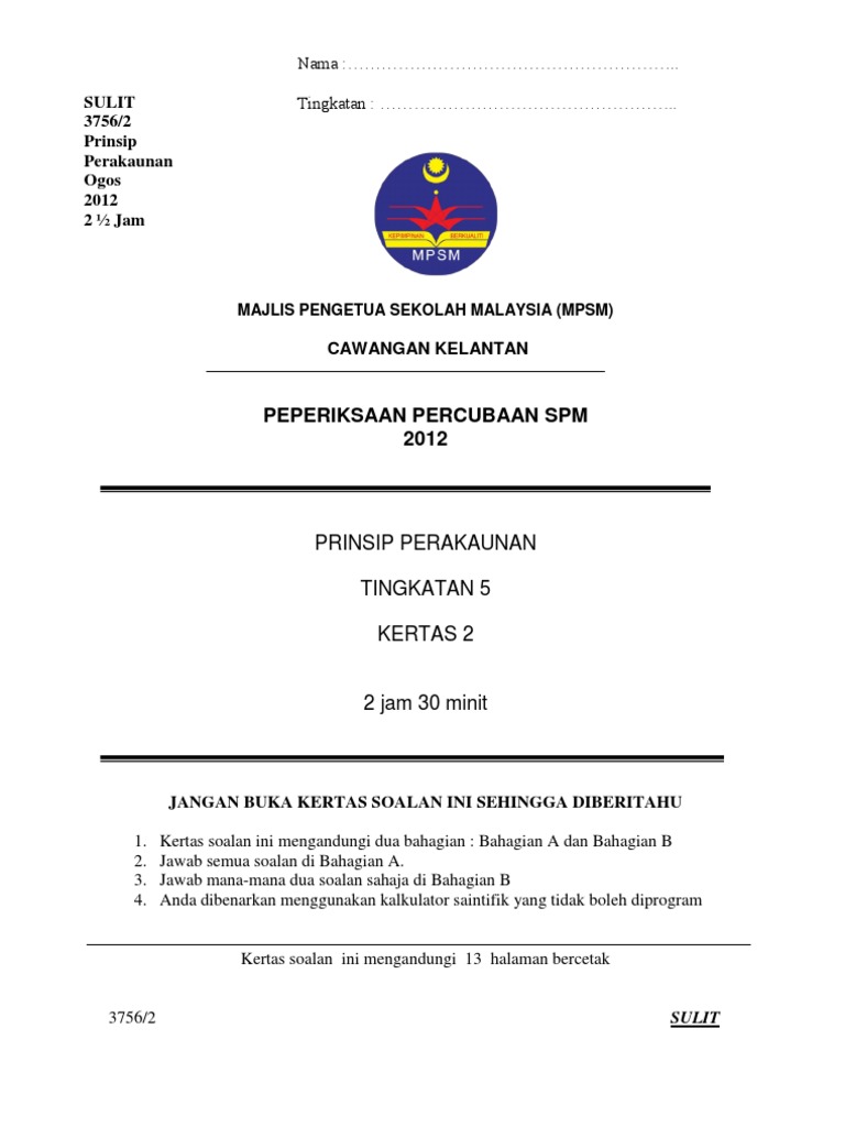 Percubaan Spm Bahasa Melayu 2016 Kedah Perlis Pulau Pinang Sumber Pendidikan Skema Bm2 Pp