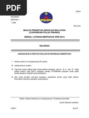 Trial Penang Spm 2014 Sejarah Kertas 1 Dan Skema