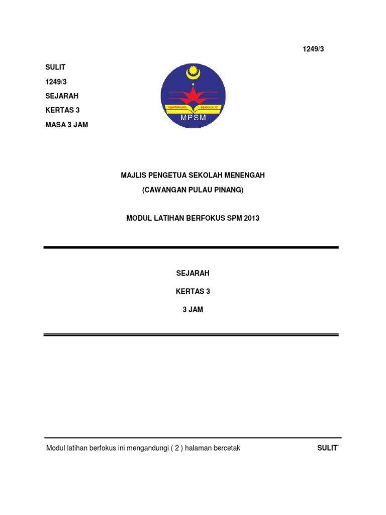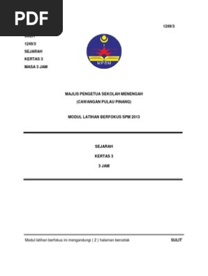 Soalan Modul Umum Latihan Berfokus Spm Sejarah Kertas 3 Majlis Pengetua Sekolah Menengah Cawangan Pulau Pinang