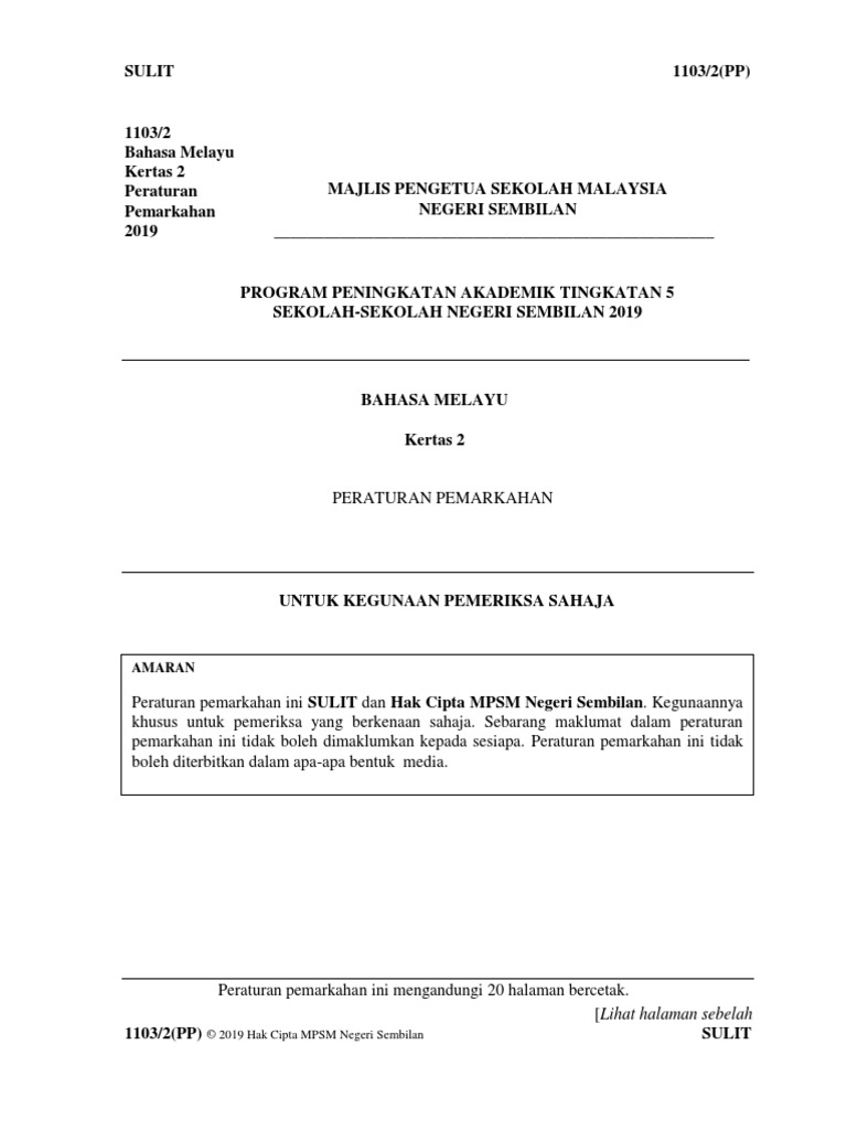 Skema Jawapan Kertas 1 Dan Kertas 2 Negeri Sembilan Bm Spm Percubaan Pdf