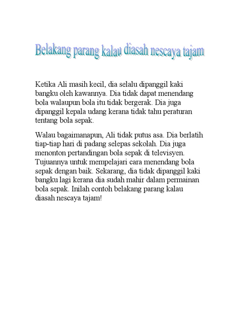 Karangan Belakang Parang Pun Jikalau Diasah Nescaya Tajam