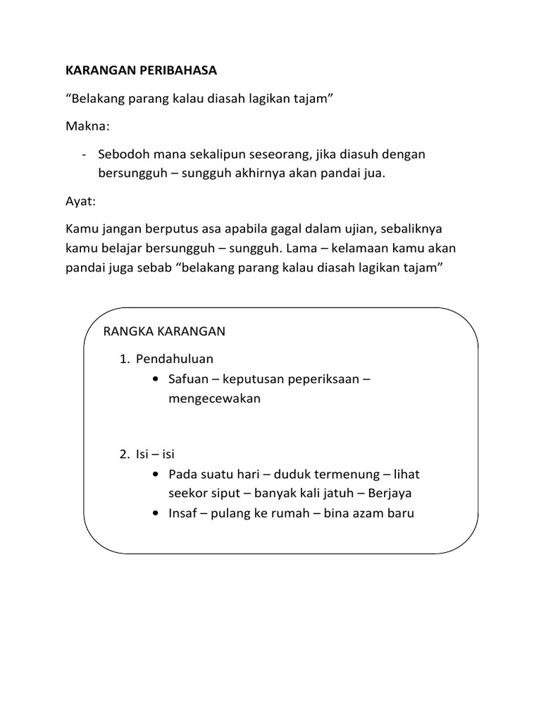 First Entry Karangan Peribahasa Belakang Parang Pun Jikalau Diasah Nescaya Tajam