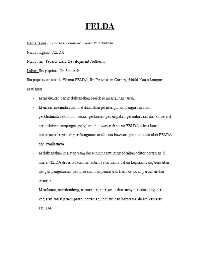 Selaku Salah Sebuah Organisasi Yang Felda Lembaga Kemajuan Tanah Persekutuan Facebook