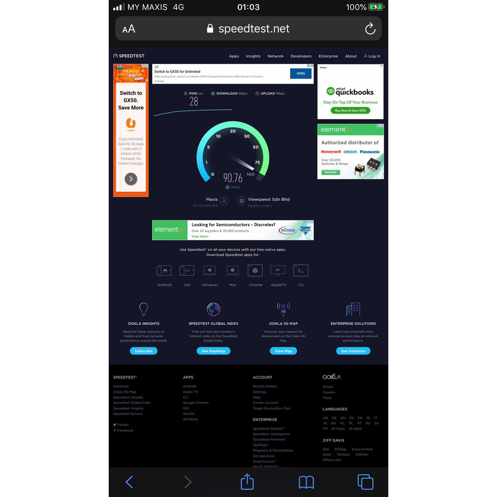 Maxis One Go Wifi Speed Test