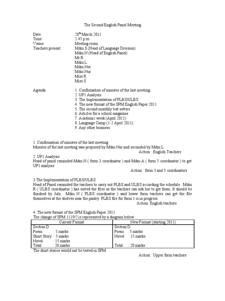 Doc Minit Mesyuarat Panitia Bahasa Inggeris Alis Hafizi Academia Edu
