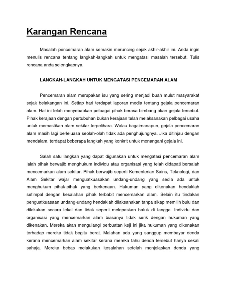 Contoh Karangan Isu Pencemaran Alam Sekitar 8 Contoh Cute766