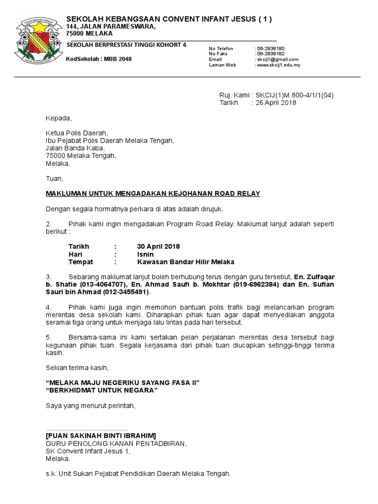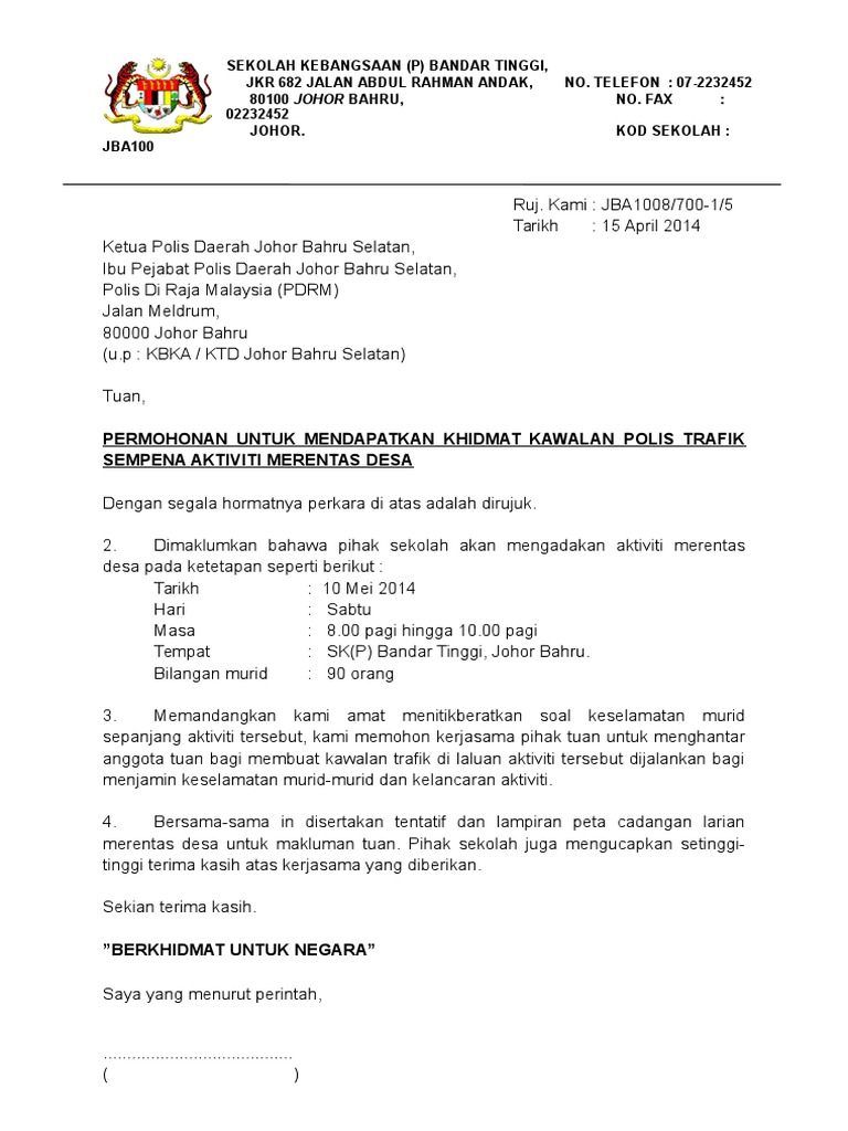 Surat Rasmi Contoh Surat Makluman Kepada Polis