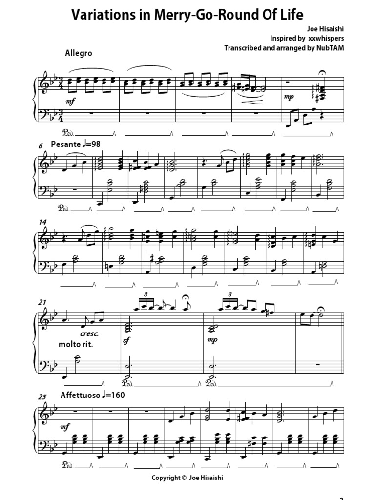 Variations In Merry Go Round Of Life Piano Sheet Music Musical Compositions Musical Forms