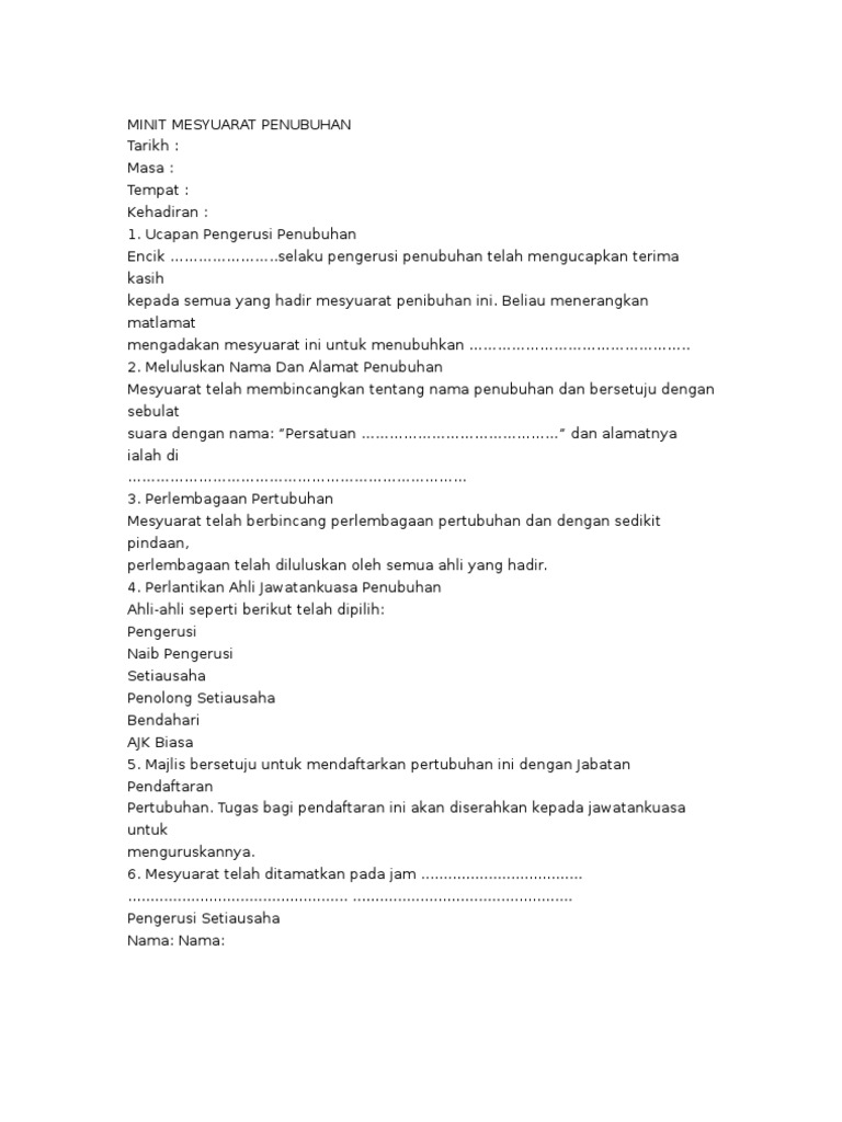 251107801 Contoh Minit Mesyuarat Penubuhan Persatuan Docx Minit Mesyuarat Penubuhan Persatuan Minit Mesyuarat Agung Penubuhan Bola Jaring S M St Course Hero