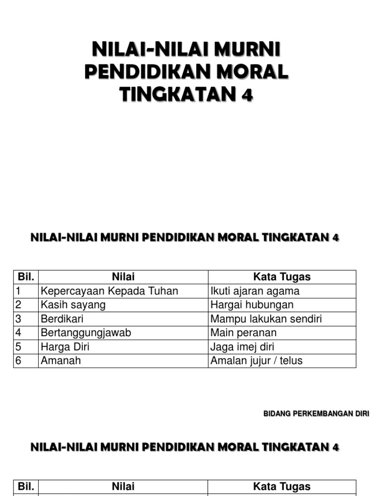 Nilai Nilai Murni Pendidikan Moral Tingkatan 4