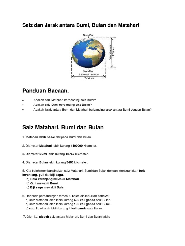 Saiz Bumi Bulan Dan Matahari