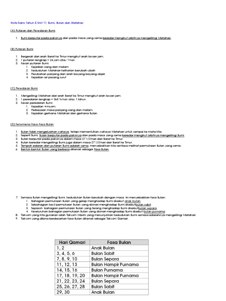 Nota Bumi Bulan Dan Matahari Tahun 5