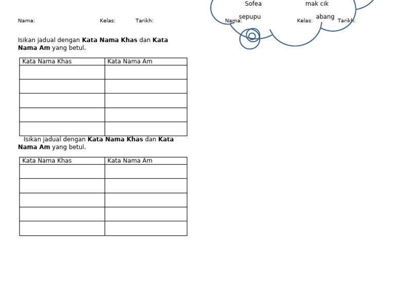 Kata Nama Am Dan Kata Nama Khas Worksheet
