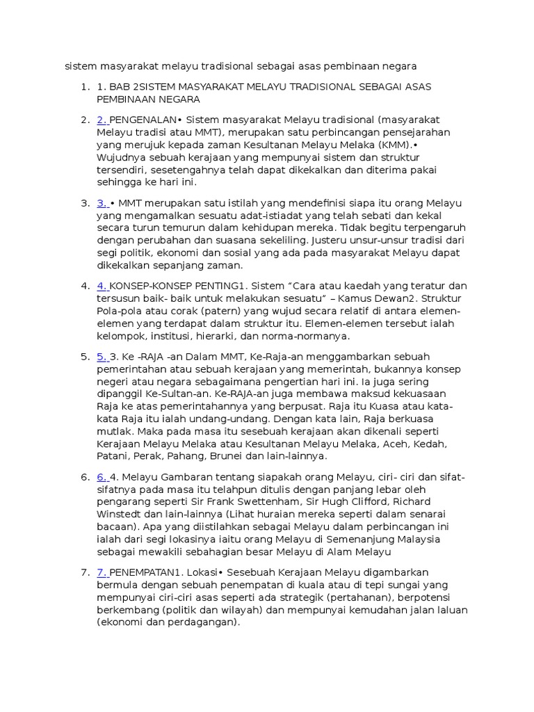 Kepentingan Sistem Masyarakat Melayu Tradisi